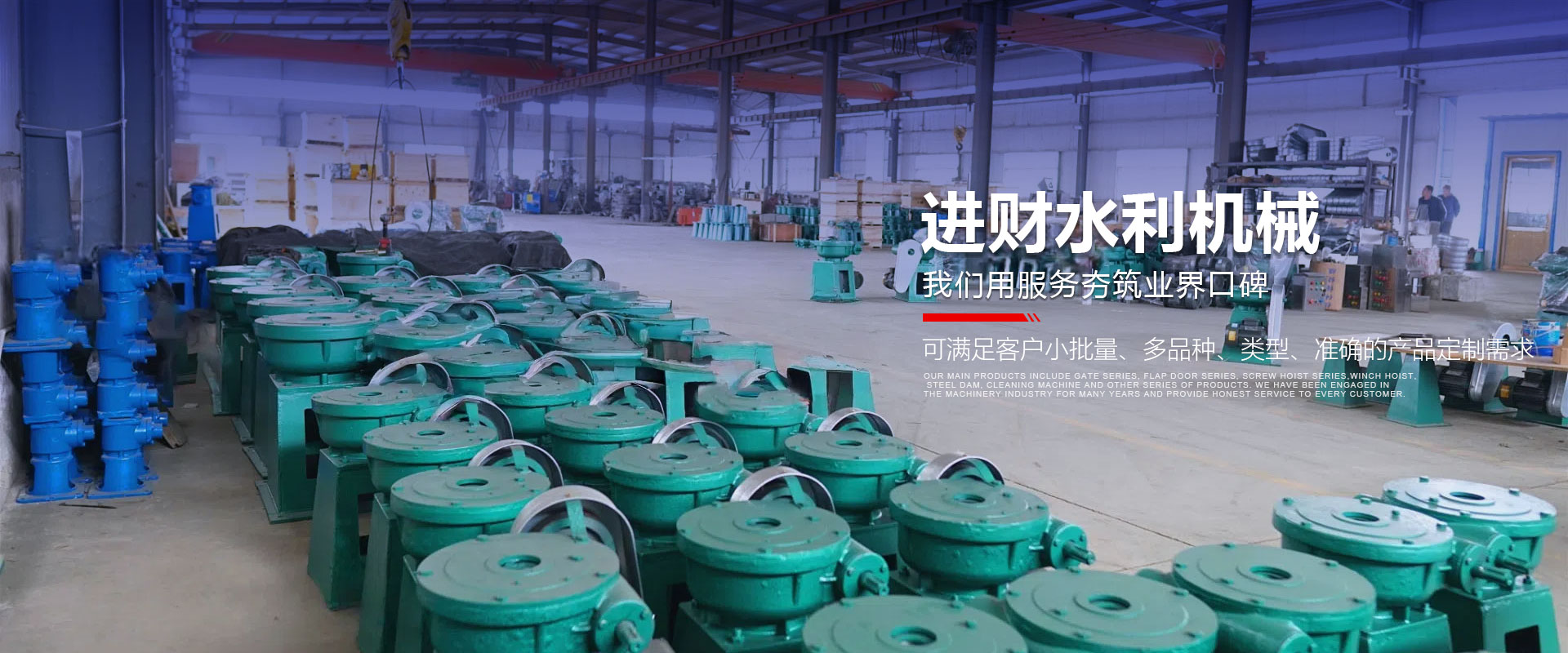进财水利 · 产品中心主营产品有闸门系列、拍门系列、螺杆启闭机系列、卷扬式启闭机、钢坝、清污机等系列产品,我们从事机械行业多年,诚信服务每一位客户。